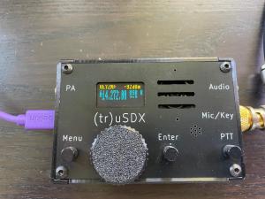 Up for sale is a (tr)uSDX QRP transceiver. I had black custom PCB faceplates made for my 2 radios. This one is standard bands and includes the SMA/BNC adaptor. The case is printed in Black PET-G so it is strong and less suceptible to heat. Also has the custom low profile VFO knob designed by DL2MAN and black "knobs" for the pushbuttons. $105 shipped to CONUS/Canada.