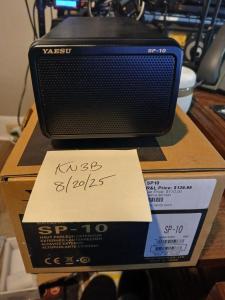 Yaesu SP-10 external speaker with audio cable and original box. Tested and works, won't be DOA. Good cosmetic condition. I have one left, $100 shipped to your QRZ address. Make an offer