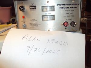 From an SK Estate, this NPC (Thomson CSF Electronics) Model 10R is a Regulated 25A 13.6 VDC power supply. Some wear scratches on cabinet top, but tested and full operational. Dimensions: 9w x 9d x 5”h; 5 lbs. Price: $45 plus $25 shipping. Paypal accepted. Contact Alan K9MBQ in Charlottesville, VA
