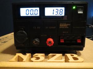 Pipeman's DPWS-2212, 13.8V/22Amp Power Supply. 2 pair of spring terminals rated at 3 amps, 1 power outlet rated at 10 amps and a set of 5-way binding post with 22 amp rating. Digital voltage and amperage meters which are backlit. $75 includes shipping to the lower 48.