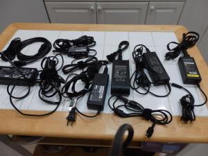 19.5 vdc-or 15vdc. One is selectable 15,18.8,20,24vdc, all tested.2 extra line cords, and one lenovo yellow rectangular adapter.