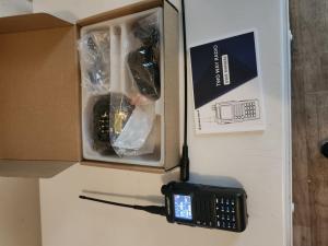 It has seen very little use and is like new. It included 2500 MAH Battery, Drop-In Charger, USB/AC Charger, Carrying Strap, box, manual, plus a 15.6" dualband whip antenna, in addition to the stock antenna.