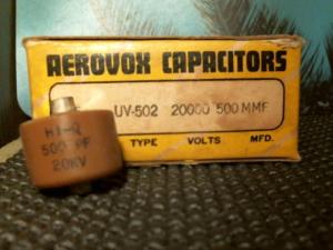 For sale are NOS Aerovox doorknob caps … 500pf at 20Kv (see pic) … 1” diameter X 1” high … use std #6 machine screws for mounting … made in U.S.A. … Price for 3 pcs is $46.25 PayPal shipped CONUS … pls inquire for DX shipping and other doorknobs. … tnx, Gene