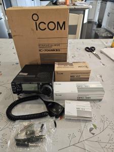 Selling for a friend whose father is a silent key. He was the only user, smoke free house. Original box. Brand new, never used Icom OPC-581 seperation cable (selling for $200 on ebay). Great unit, tested and working perfectly. Did some POTA hunting to test. Perfect "shack in a box" with all bands and all modes. 1500000+ serial number. Needing to go to a home that will get some use out of her. Comes with microphone, unopend accessory pouch with fuses and CW adapter. Mounting brackets and head unit mount included. All never used and still in the plastic. $600 or make me a fair offer. Buyer pays the shipping.