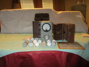BIRD 43-P WATTMETER, including 16 Bird elements and the "dummy slug". The elements cover 440 MHZ down through HF frequencies. Also included are 2 carrying cases - one for the wattmeter and a few elements and another case with space for 12 elements. Everything is in good to excellent condition. Batteries included with the wattmeter. The combined value on the used market of the slugs alone is approximately $1,000. For all the items shown in the picture including the 2 SWR plotting charts, I'm asking $960.00, including shipping costs to CONUS. At this point in the sale, I'm not considering selling individual pieces. Upon request, I will email a detailed list of each piece including the slug values. No texting, Email and phone calls only. Thanks, de Nick KM5FL.