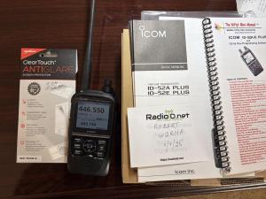 Perfect condition ICOM ID-52A Plus. Included are box, documentation, antenna, battery, radio, belt clip, screen protector on the radio plus an unused screen protector, Nifty Manual. $500 shipped to CONUS. Reasonable offer considered.