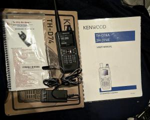 Kenwood TH-D74 Handheld Transceiver in excellent condition. Includes the original box, charger, 8.5x11 manual, and the Nifty mini manual.