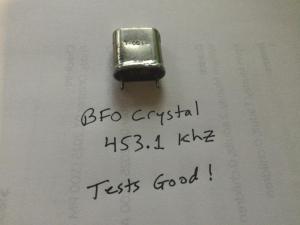 Found this while looking for something else. HC-6 type crystal for 453.1 Khz, perfect for BFO project. I tested it and it is oscillating cleanly on correct frequency. $10 includes shipping , prefer paypal but flexable. 73 Bill W9VC