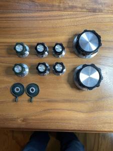 Tired of looking at those old beat up knobs on your otherwise nice Heathkit rig? I have just the fix you need! Two large and four small knobs are the rare dark green almost black color. Two are of the normal Heathkit green color. I also have two of the green tab knobs that are for switching between filters or adjusting the PA Load control. Small knobs are $10 each, large knobs are $25 each and tab knobs are $5 each. Buy all of them for $100. Shipping is included in price.