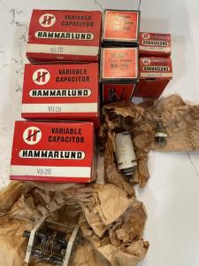 NOS Hammarlund parts. Three VU-20 variable capacitors, two MAC-5 trimmer capacitors, two XR-60 slug tuned ceramic coil forms. NOS but sold as is, $30 shipped Conus. PayPal preferred or MO. Thanks