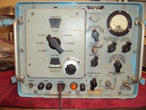 From an SK estate, this vintage military signal generator is in excellent condition and has been tested w/ both an O-scope and freq counter. It is fully operational. The Freq output is from 10Khz to 50 Mhz with Amplitude modulation selectable from 400 and 1000 Hz. The package includes: new manual copy, full case enclosure, most attachments mounted in the case cover (see photos). The mechanical engineering in this is impressive. The Power supply is mounted in the case and the unit uses 115 VAC – cord included. Dimensions: 11 ¼h x 14w x 10¾“d; weight 37lbs. Price: $250 + $95 shipping. This is a heavy unit – suggest pickup or will meet w/i 90 min drive from Photos available on Request