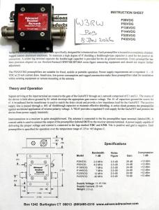 Selling an Advanced Receiver Research (ARR) Model P144VDG 144MHz Preamp for XYL of silent key. Operation confirmed.