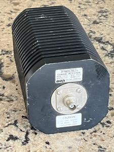 I have available a BIRD Dummy Load, model 8166. This is the same as the 8165 except there are a few tapped holes on the bottom for mounting the load to a chassis. It is rated to handle 150 watts, and it is specified to work from DC to 2.5 GHz. Physically, there are a number of spots where the black finish is rubbed off or scratched off, but that does not affect the load. Currently there is a BNC female connector on the load, but If you would prefer a different connector (UHF female or N female) let me know and I can change it for you.