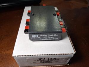 **Sale Pending** MFJ-1106 is a compact and low profile DC distribution platform designed for your operating station desk.It contains seven Anderson Power Pole connectors all connected in parallel, permitting one DC input to be shared by six outlets. Great condition in original box. $35 shipped conus.