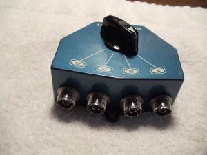 Here is a 4 position coax switch. Excellent condition, never outside. Very heavy construction. Shpd for $100 or best offer.