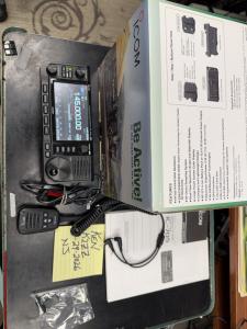 Comes with power cable with Anderson power pole connectors, manuals, box, and microphone.