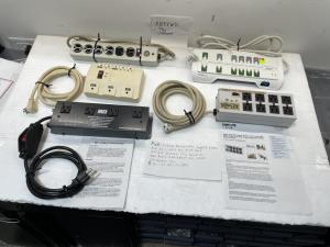 These five boxes (outlet boxes each one has the number of AC outlets)AC power line suppressors and RFI filters (110 to 125 volts) are in mint condition They were used on ham radio equipment and other equipment also all of them have an on/off switch the MFJ-1164B had a on/off switch put on the power line it didn’t have a on/off switch on it. It protects them from interference on the power line that’s why you have these power line boxes it has suppressors and RFI filters they work on network, point-sale-equipment and audio/video and amateur radio systems. Look at the picture and you can see all the power line boxes. The manuals tell you all the information you can mount them on a wall or where ever you want to mount them