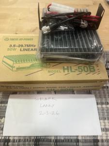 This is a never used Tokyo Hy-Power HL-50B compact 12 volt solid-state HF/6-meter linear amplifier. 5-10 watts in to around 50 watts output. $400 shipped. PayPal or Zelle.