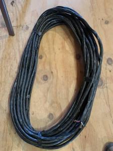 105 feet (approx.) of heavy duty rotor cable. 9 conductor cable plus 1 conductor taped to outside 14 gauge stranded (see pic) This was used to power and control a prop pitch antenna rotor.