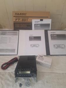 Yaesu FT-891,unused (never turned on, setting on shelf), copy of operating manual,ALSO Technical supplement,Yaesu Original manual,Advanced manual, all are in a 3 ring notebook, each page is in a plastic sleeve. Power cord with original zip tie around it,box, hand mic, mobile bracket, hardware. Separation kit in box. Radio will be double boxed. Sold as is, $845.00 includes shipping and insurance. U.S. only, Hawaii and Alaska $20.00
