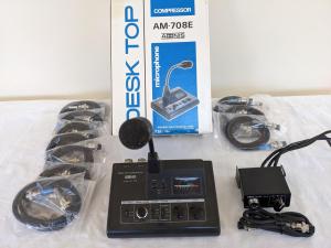 The Adonis AM-708E is a high-quality desk microphone with a built-in compressor amplifier, dual transceiver support, and FM/SSB audio quality selector. Features include adjustable output, time-out timer, on air indicator, and an analog meter. Powered by AA cells or external DC. Included are 14 radio interface cables: 4 Kenwood, 6 Icom, 3 Yaesu, and 1 Alinco. Also included is an Adonis AK-5 mic switcher. All items are in excellent condition. I am selling these items as an entire lot. $188 including CONUS shipping.
