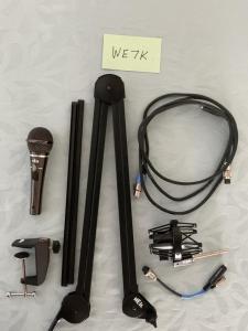 Heil packet for sale: HM-10 microhone with narrow and wide elements, boom with C clamp and removable cable cover, shock mount, microphone adapter cable, Icom adapter for PTT footswitch.. Please see photo for details. Fully functional but sale final with no return or refund. $150 plus $25 contribution to ground shipment. Paypal, USPS money order or cashier’s check, please. Thanks for reading 73 Tommy WE7K