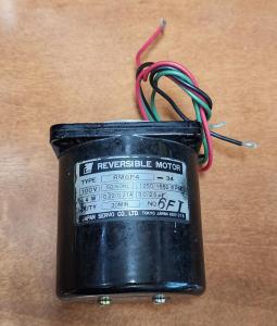 AC Reversible Motor Type RM6P4 by Japan Servo Co. LTD. This motor appears unused. The plastic gear protective cover is still on the output shaft of the motor. I tested this motor with a variac at 100v AC at 60Hz and it ran just fine..Asking $25 shipped. I can accept cash, check, or paypal(buyer covers fees).
