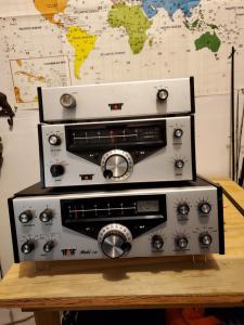 Complete Ten Tec Model 540 Station consisting of the Model 540 Transceiver, Model 24 External VFO and the Model 240 160 Meter Converter. Both PTOs have been rebuilt and operate smoothly. All three pieces power on and there is audio. This is a project I realize that I will never complete so it is time to offer it to someone with the desire to finish it.