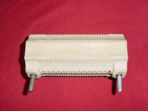 This heavy ceramic coil form is 2. 5 inches in diameter and is 5 inches long. It has groves for 25 turns and has 22 turns on it. Diameter of the windings is 2.25 inches. There are mounting holes on one side of the form and pins that the winding is terminated at on the opposite side. $37 shipped. I take PayPal, Postal MO and check.