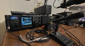 Up for grabs, is an Icom IC 756 PRO III with matching power supply unit, external speaker and SM 20 desk mic.