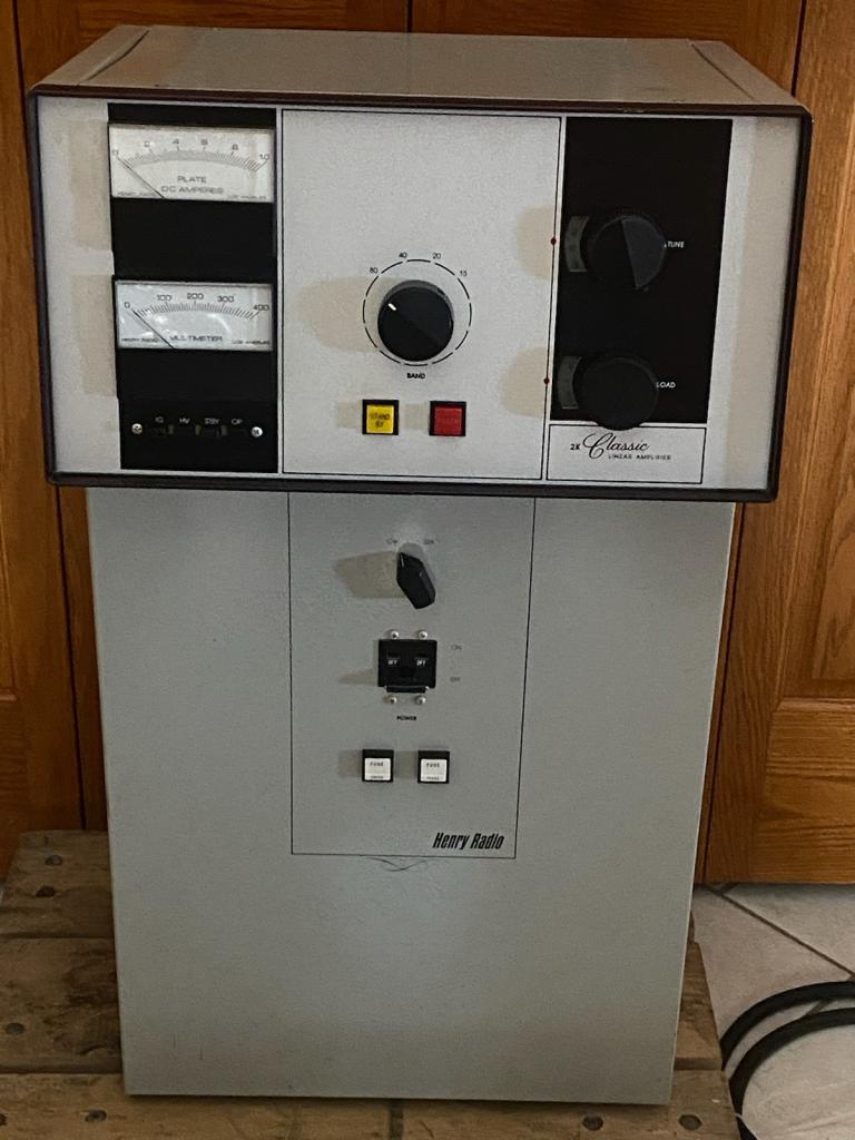 Henry 2K Classic amplifier is in excellent shape and my friend, KRØP, just went through it - I have not used it for almost 15 years since I bought it and it is an awesome amp. Has two 3-500Z tubes that are working well. Can use 60 watts up to 100 watts to drive it. It can put out up to 1,500 watts PEP. Wired for 220 volts. Henry amps are built like tanks and it is a great amplifier. You will have to pick it up or meet me within about 250 miles from my QTH - located in Eastern Nebraska. We have family in Dallas, Texas area, and I could bring down there, if the timing works. Price $1,650 OBO. Cash payment please. WTØQ