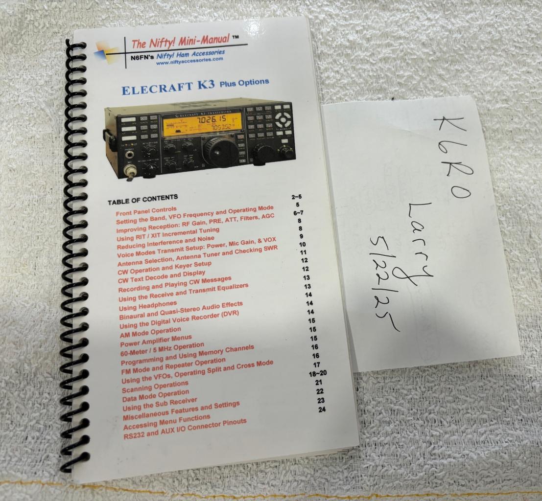 Elecraft K3 NIFTY Mini Manual ! often asked for.