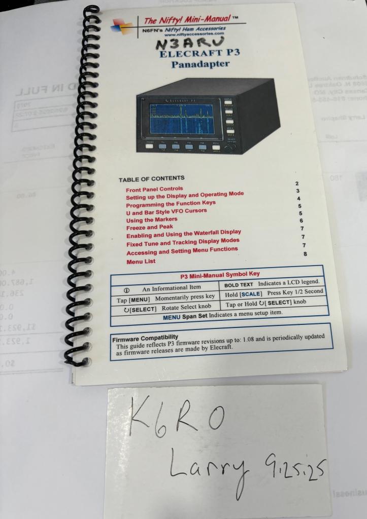 Elecraft P3 Panadapter NIFTY Mini Manual ! often asked for