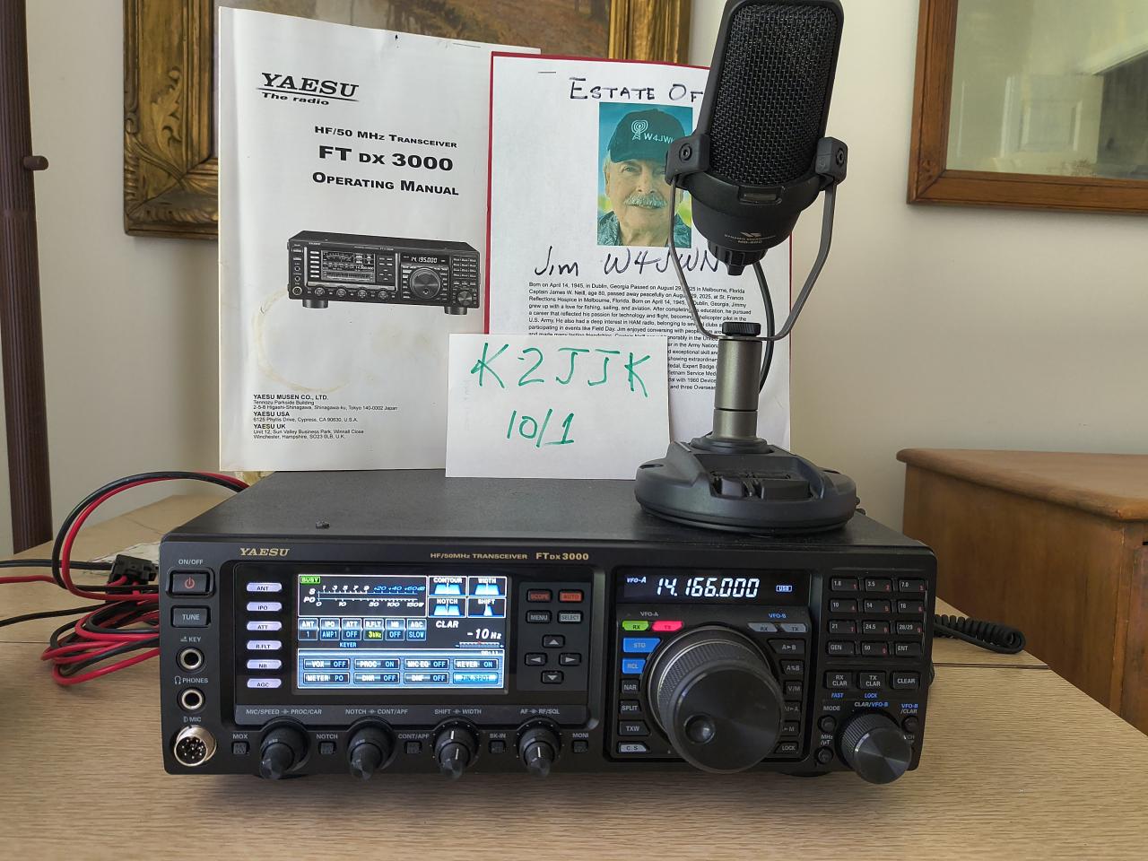 This is from the estate of Jim/W4JWN and is being sold for the benefit of his 3 daughters. The FTDX 3000 and MD-200A8X are untested but believed to work. The equipment looks in a 9-10 visually condition.The radio includes double fused original power cord and documentation. There is no box but will be packaged and shipped professionally. This is being sold at a deep discount with no guarantees and the sale is final. Payment via paypal or postal MO. My contact information is good on QRZ.com for questions, etc. Thanks for looking. Jim/K2JJK