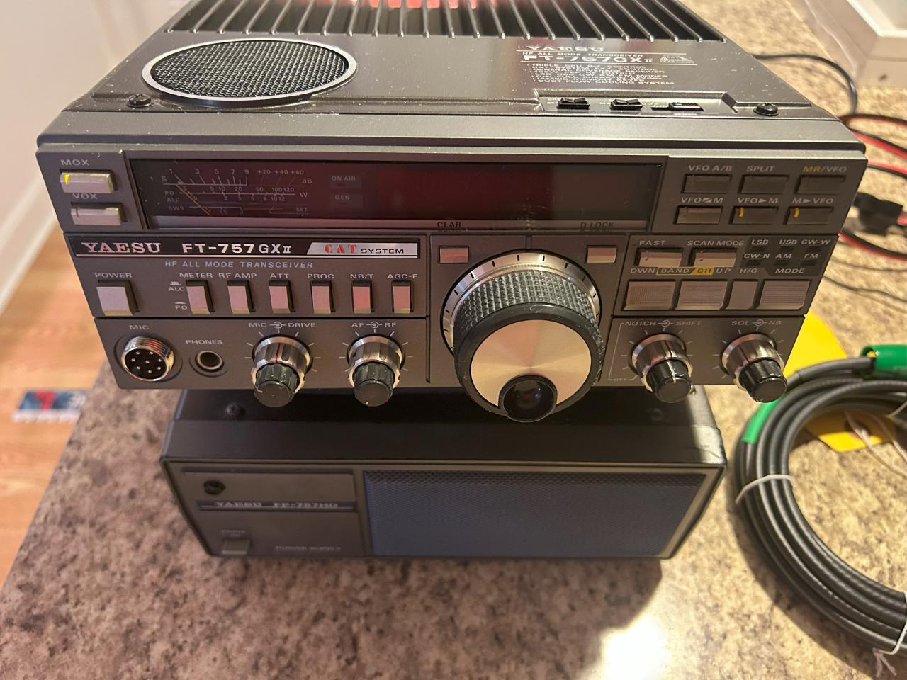 Mint condition Yaesu FT-757GX-II 160-10-meter 100-Watt radio. Excellent cost-effective POTA or Portable HF Radio. New Power cord, Mic Full break in CW.