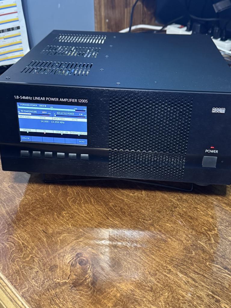 ACOM 1200S SOLID STATE AUTO TUNE AMPLIFIER. MINT CONDITION.IN AIR CONDITIONED ROOM, NON SMOKING AND DUST FREE ENVIRONMENT. FULL POWER OUT WITH UNDER 50 WATTS DRIVE, ORIGINAL BOXING, 220 POWER CORD INCLUDED. ONLY USED SPARINGLY--VERY LOW RUN TIME. NO DEFECTS OR SCRATCHES. ONLY SELLING CAUSE I WENT ALL FLEX STATION.