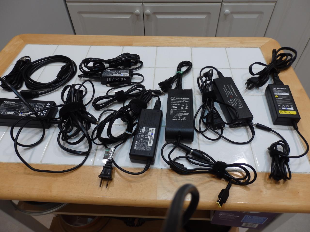19.5 vdc-or 15vdc. One is selectable 15,18.8,20,24vdc, all tested.2 extra line cords, and one lenovo yellow rectangular adapter.
