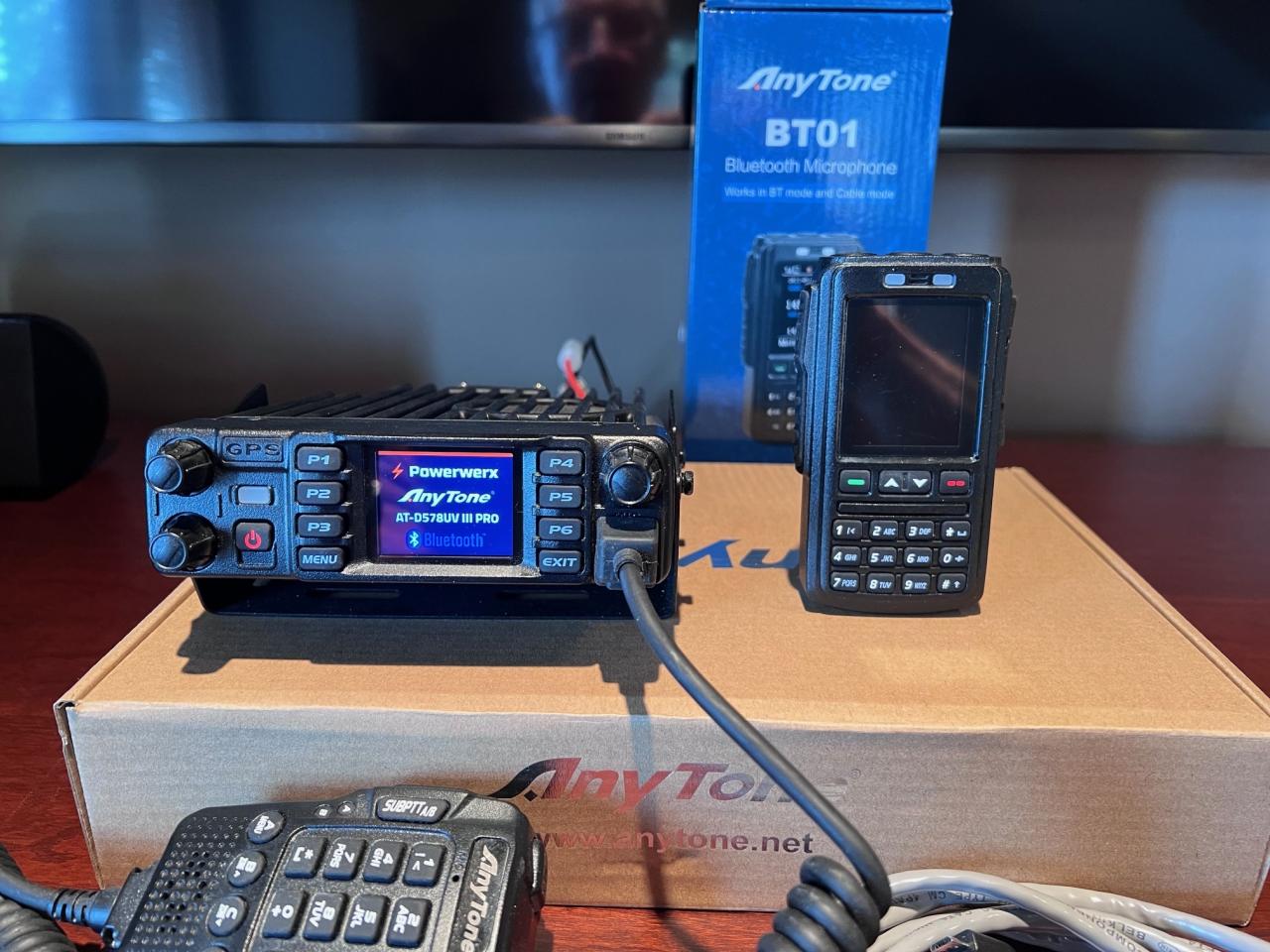 For sale: AnyTone AT D578 UV Pro mobile VHF, UHF & DMR mobile / base radio & optional BT01 Bluetooth remote mic. Both are one owner, like new. Used about a month then re-boxed. The package includes the transceiver, $150 remote BT01 mic, OEM hand mic, cables & hardware (including xcvr mounting bracket), AT-D578 UV manual, Bluetooth & BT01 user guides and the AnyTone boxes. The BT01 remote mic works in both Bluetooth and cable modes. Bluetooth mode allows the remote mic to be located and operated cable free separately from the xcvr. The BT01 provides xcvr remote control of power on/off, volume, VFO/channel select, make a call / receive a call and more. The package price is $400 shipped CONUS. This will save the buyer about $150 plus no shipping or tax expense compared to ordering everything from a dealer. Payment options are USPS money order, bank draft or PayPal Family & Friends. Thank you.