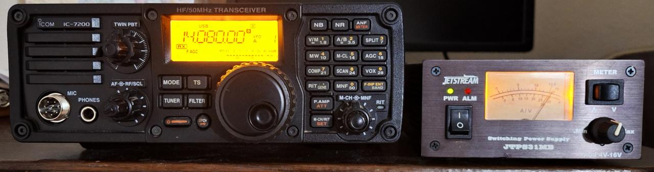 ** REDUCED PRICE ** ICOM 7200, works exactly as it should and in nice cosmetic condition. The radio is paired with a Jetstream power supply that provides user-adjustable 4 to 16 volts at 25A continuous, up to 30A surge. Included are the original manual, original hand microphone and a DC cable that mates the radio to the power supply. Will not separate, must buy the whole package. Double-boxed and ready to ship. Price is $650 shipped and insured anywhere in continental USA if paid by Zelle, Paypal F&F or personal check. Price if Paypal G&S is $670 (buyer pays 3% fee).