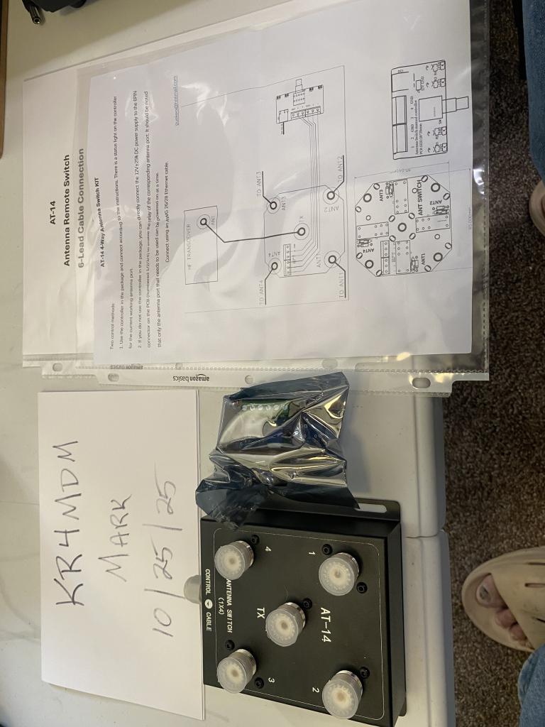 Designed to handle up to 500W PEP, this 4-way coaxial switch comes complete with casing ready to use. Supports a broad frequency range from 1.8MHz to 60MHz. Features high-quality SO-239 connectors for secure and stable connections, ensuring minimal signal loss and long-lasting durability. This is a brand new unit just taken out of box to do some set up on my other switch. Just need the cable from Amazon at just $15--https://www.amazon.com/dp/B0CFJX6P8C?ref_=ppx_hzsearch_conn_dt_b_fed_asin_title_28&th=1. You can have this working in your station for just $40 plus shipping. As always all sales are final due to parts swappers.