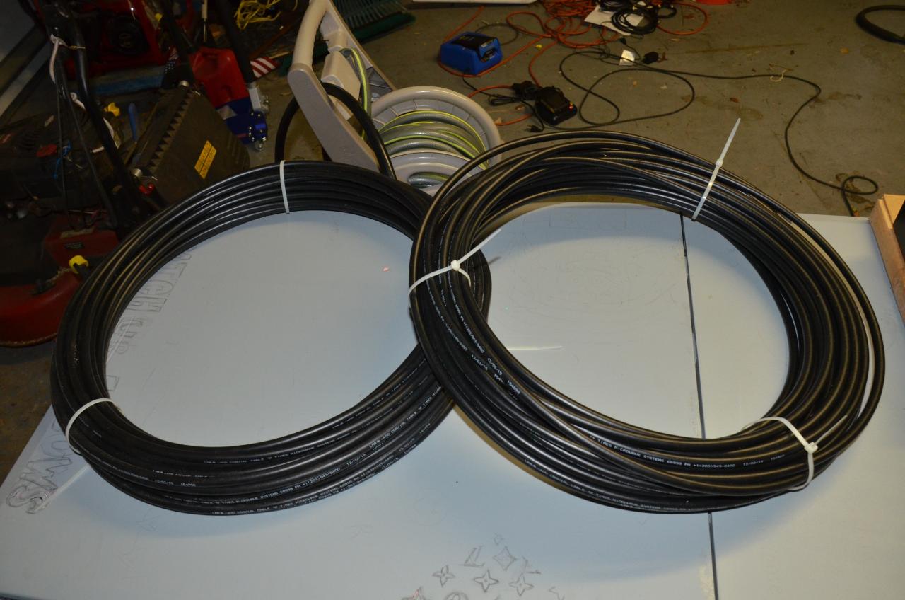 I have 2 sections of LMR-400 coax cable as new with no connectors. They have been cut to be between 105’ and 110’ so call them 100'. They are wound up into 22” (diameter) x 4” (height) but that could be adjusted. I’m offering each for $50 and you pay for shipping or pick up. Purchase both and save.