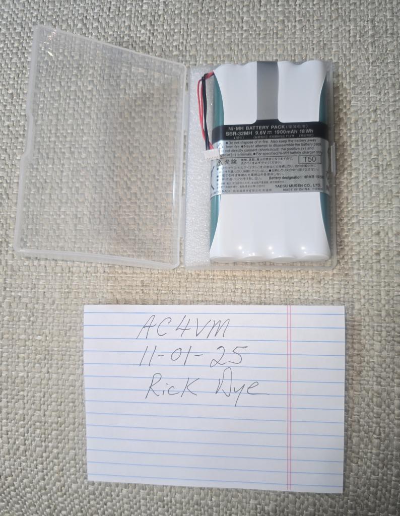 New authentic Yaesu SBR-32MH battery for the Yaesu FT-818ND. $90 mailed to the lower 48 states. Payment via Venmo, check, USPS MO.