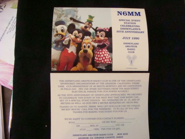 N6MickeyMouse SPECIAL EVENT STATION QSL CARD CELEBRATING DISNEYLAND'S 35TH ANNIVERSARY.