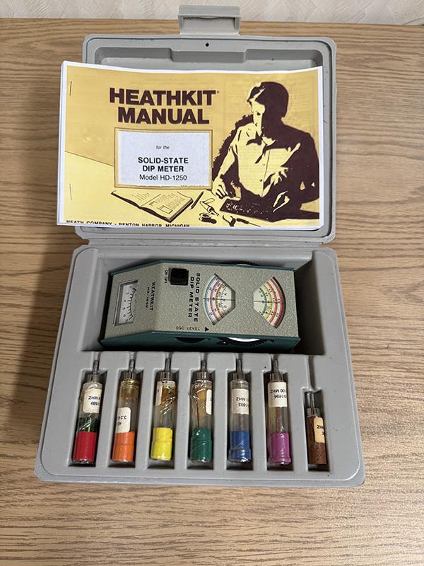 This is a Heathkit HD-1250 Solid-State Dip Meter with case, all 7 Coils, fresh battery installed, and a copy of the manual.
