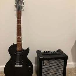 Epiphone Les Paul / Roland Cube 15XL. Amp. both as new , ready to play .Great guitar for beginners. Great sound and condition , make offer , I will add a cable not pictured . Possibly trade for QRP Transceiver ,stereo amplifier , maybe bookshelf speakers,Stratocaster style hard case . $200 for both guitar and amp, plus help with shipping....
