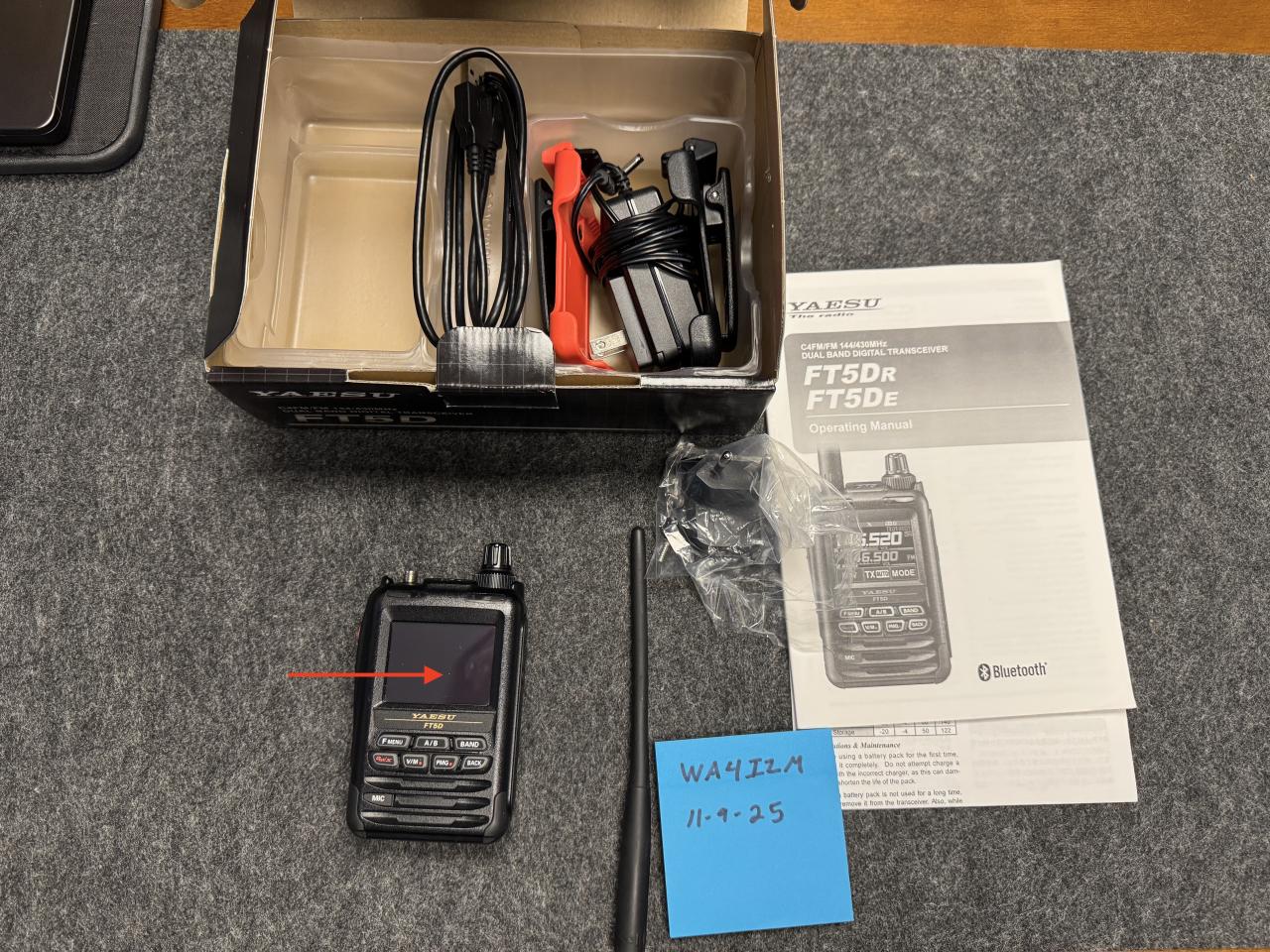 For sale, a lightly used Yeasu FT5D. The radio is in great condition. There's a tiny spec on the touchscreen overlay that I tried to capture in one of the pictures. It doesn't affect operation and is barely visible. More pictures available. $275 shipped to lower 48. No returns. PayPal F&F preferred.
