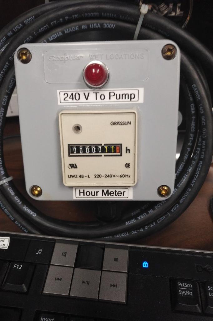 This is a digital Hour meter for 240 volts. It is in new condition with 11 Hrs shown on the digits. It is in a 4 x 4 x 2 scepter box complete with a 240 volt neon indicator lamp and about 6 feet of brand new cabtire for the I/O ocnnection.It might be useful ay a remote repeater site to check on how many hours the 240 volts to some equipment is used.$15.00 plus postage by Canada Post