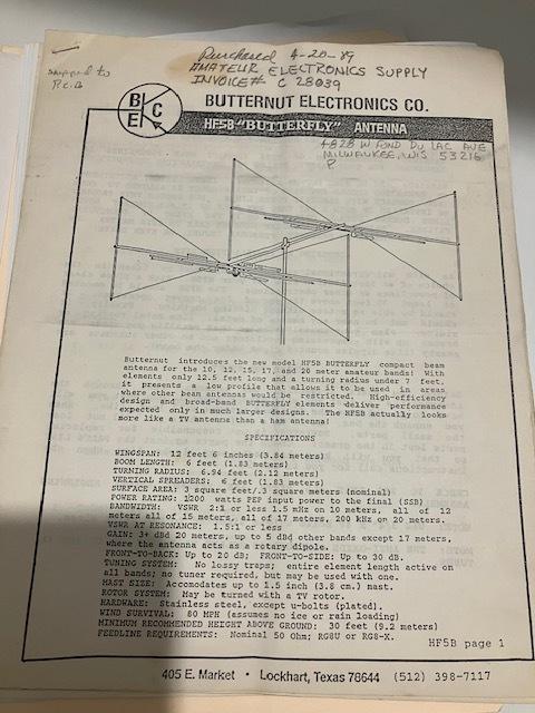 These are hard to find manuals , Butternut HF5B Butterfly from 1989, if you have lost yours now is your chance.