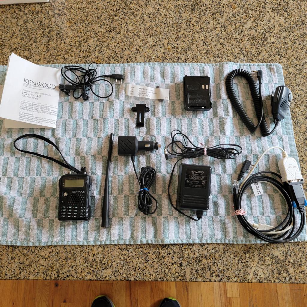 PG-4P Programming Interface - BT-13 Battery Case- EMC-3 Clip Mic and earphone - SMC-34 Speaker Mic- PG-3J Cig Lighter Power Cable - PB-42L Battery pack - Antenna - Kenwood AC wall power adapter - Belt clip - extra rubber cap jack cover - $215 shipped CONUS Only