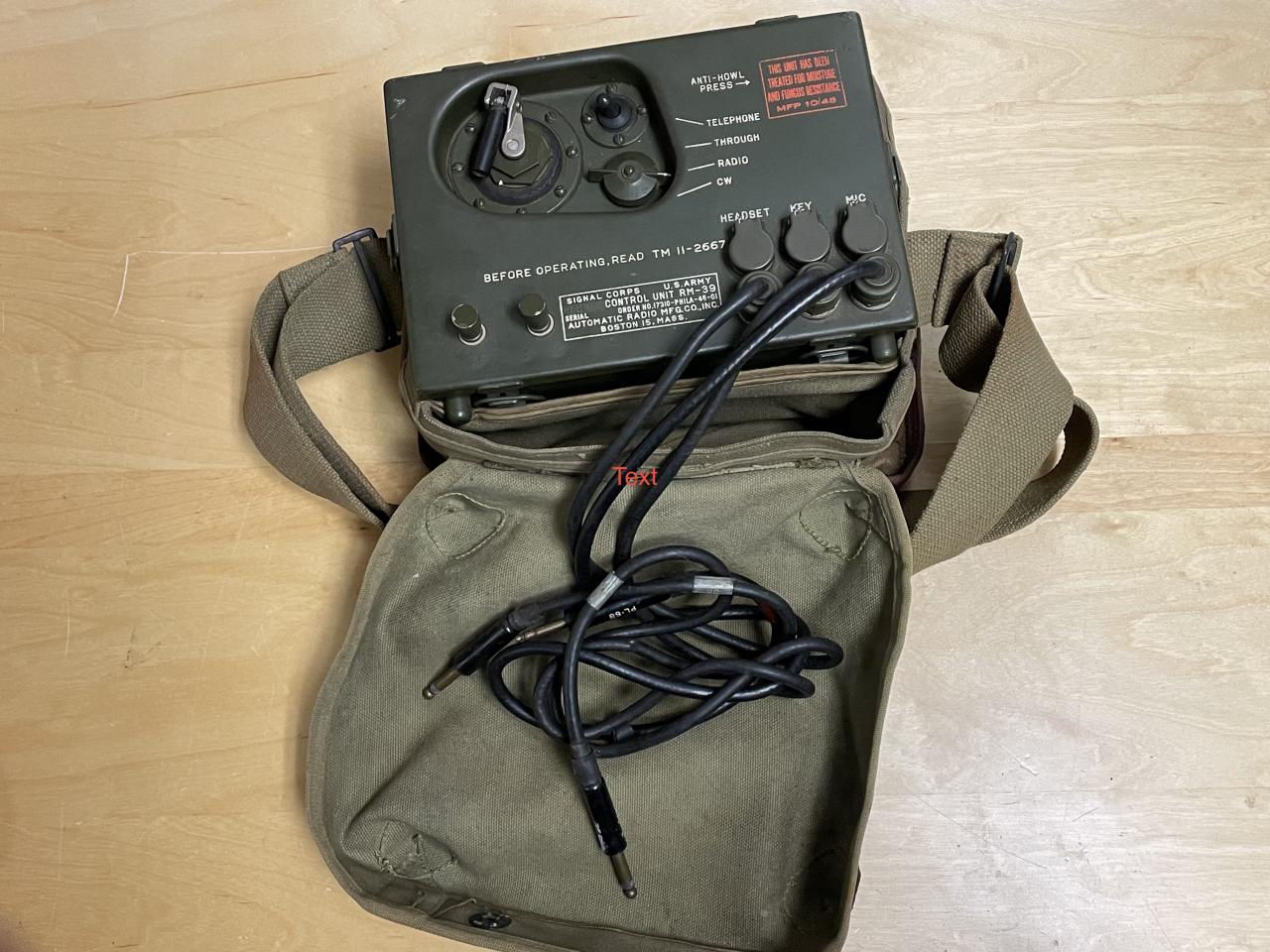 For Sale - RM-39 Remote Control with CS-76-B Canvas Case. Park your jeep on a hill and run your radio from the safety of the valley. $75 plus shipping. The unit is very clean outside and pristine inside. The 80 year-old leather gussets on the canvas case have dried... some came loose. More photos available. Shipping: 17 pounds, 17 x 9 x 12 from Zip 10708, or pick up 10 miles north of NYC.